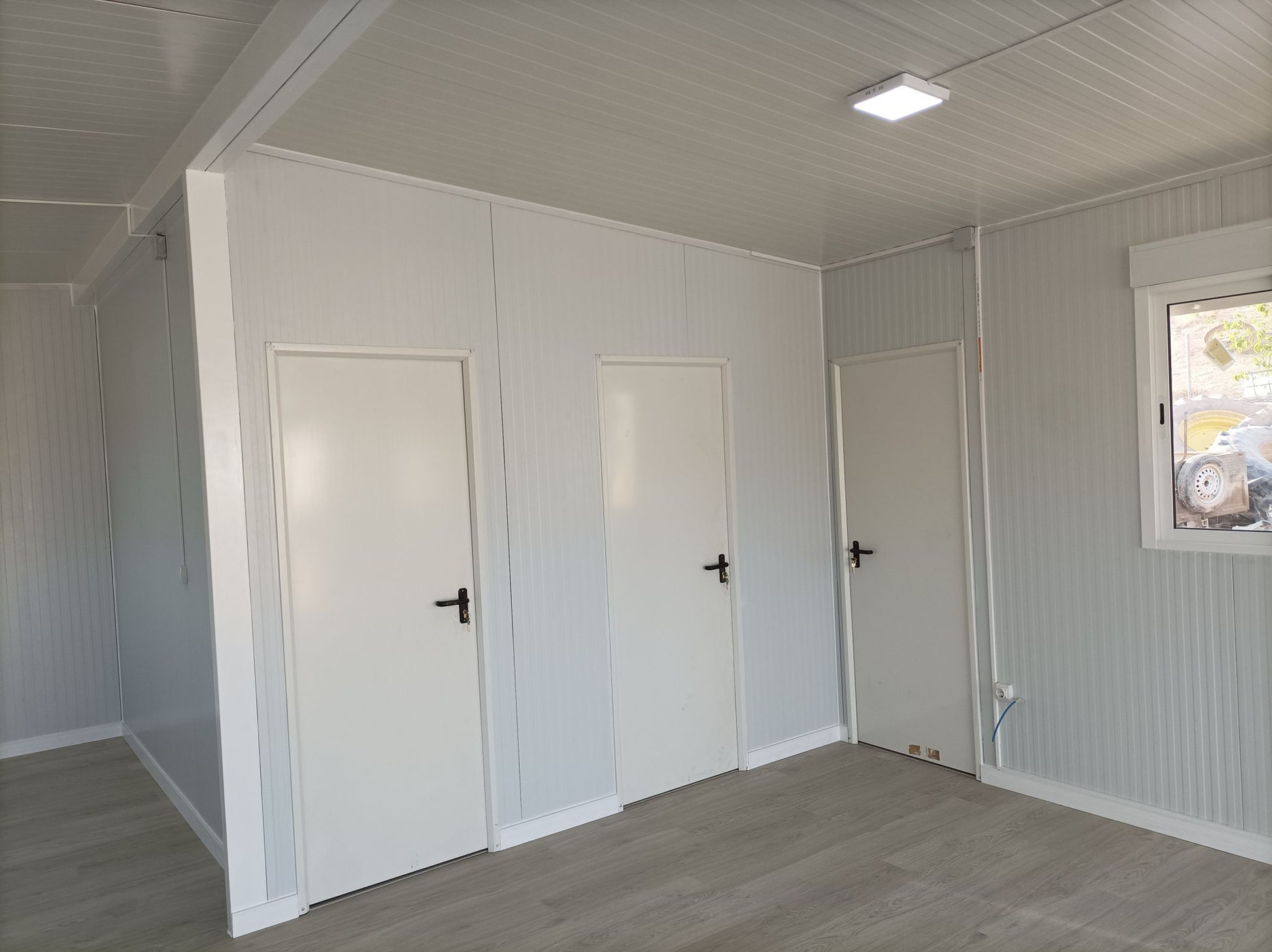 Descubre la versatilidad de nuestras casas modulares de 60 m², diseñadas para adaptarse a tus necesidades. Este modelo estándar incluye una distribución funcional con amplio salón-comedor, cocina, baño completo y dos habitaciones. Fabricada con paneles sándwich de alta calidad, garantiza aislamiento térmico y durabilidad, perfecta tanto para primera vivienda como para escapadas al campo.